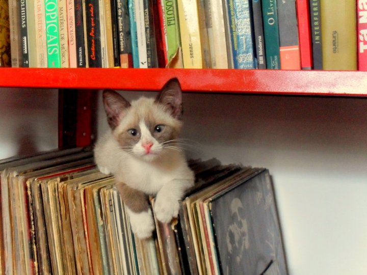 Ela já sentiu que existe uma outra realidade para longe dos muros da minha caverna urbana: sons que invadem o apartamento e o que antes eram sombras nas paredes, transfomaram-se em estranhos objetos móveis nas noites do caloroso verão – assusta-se e pula de volta para o chão após escutar o freio ruidoso do ônibus. O mundo não corresponde mais somente a superfície da mesa, a altura mediana da cadeira, o apoio do sofá e as prateleiras com os livros e discos. Agarra-se nas beiradas e tenta ir além dos limites do apartamento. Observa a porta de entrada escondida entre os sapatos por ali guardados, na primeira oportunidade arrisca-se em fuga. Deixo a pressa e corro em seu resgate.